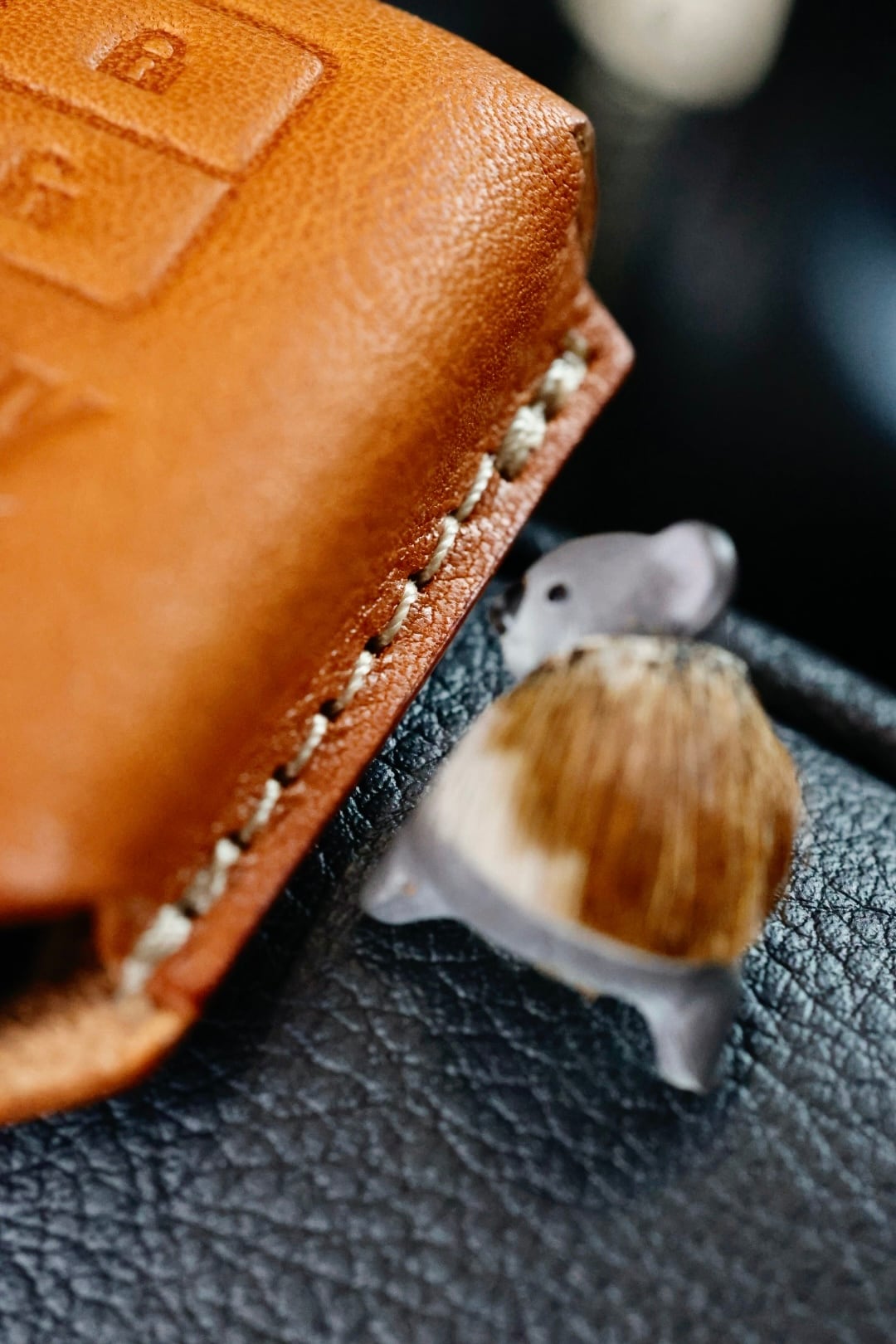 革製品には革本来が持つシミや色ムラ、小さなキズがある場合がございますが、これらは自然の持ち味とご理解いただき、末永くご愛用くださいませ。